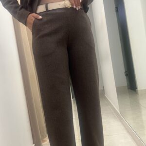 High-Waist Textured Wide-Leg Trousers – Brown