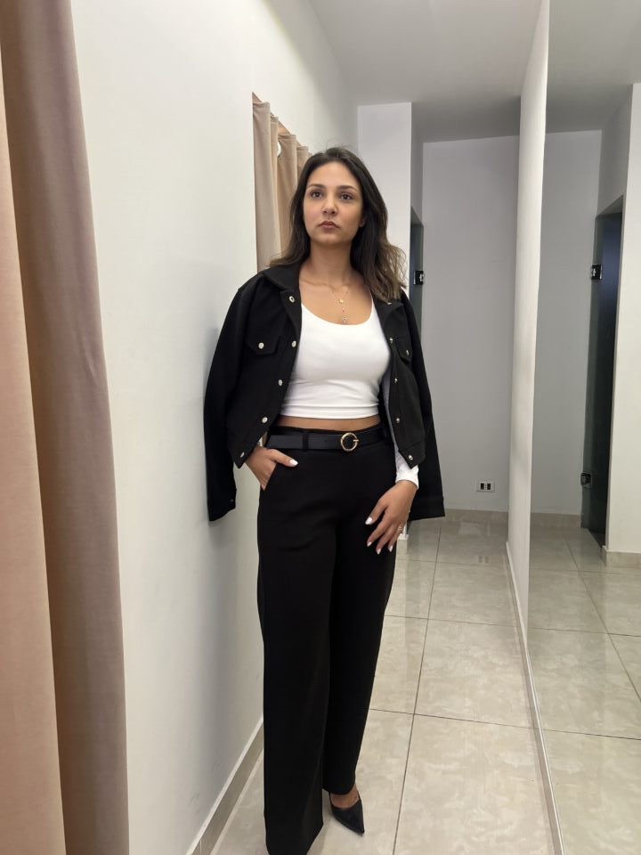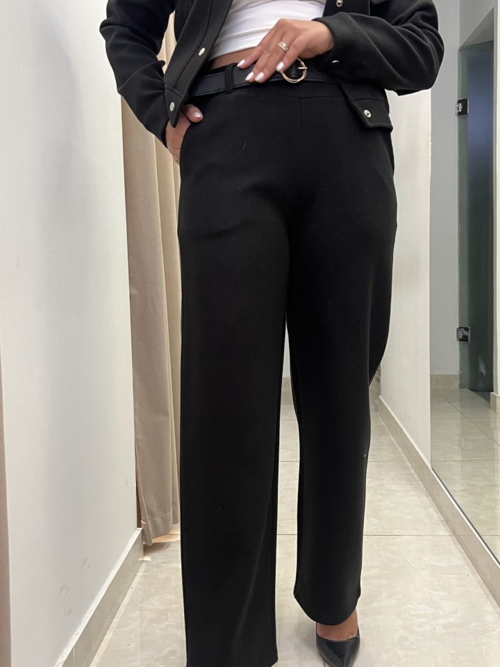 High-Waist Textured Wide-Leg Trousers – Black