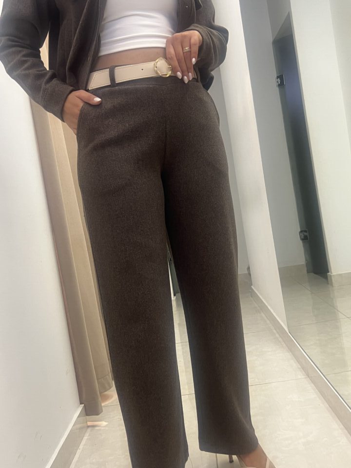 High-Waist Textured Wide-Leg Trousers – Brown