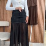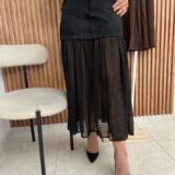 Unveiling the “Midnight Duet” Velvet and Tulle Maxi Skirt