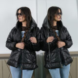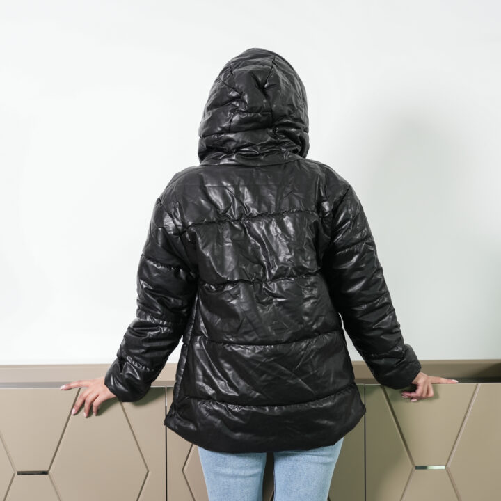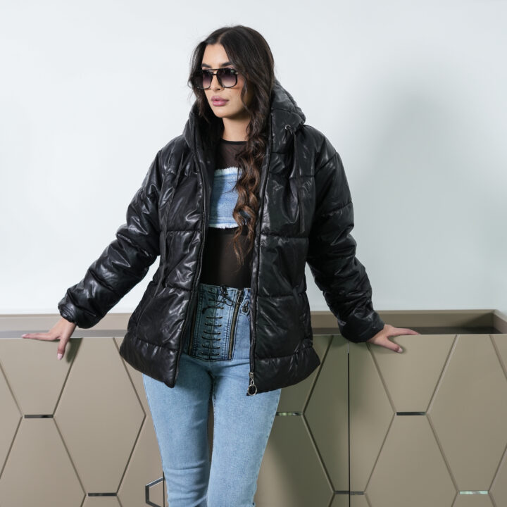 Stay cozy without sacrificing edge in this statement black puffer jacket.
