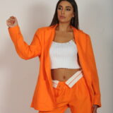 This ensemble combines the oversized, relaxed fit blazer with the wide-leg trousers, featuring that distinctive contrast white waistband detail.