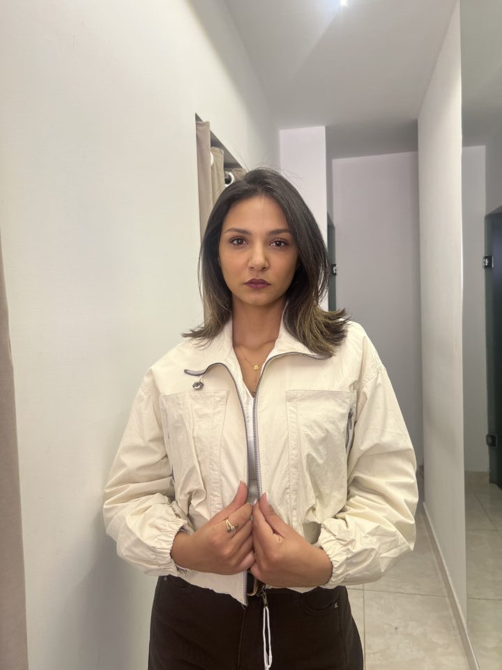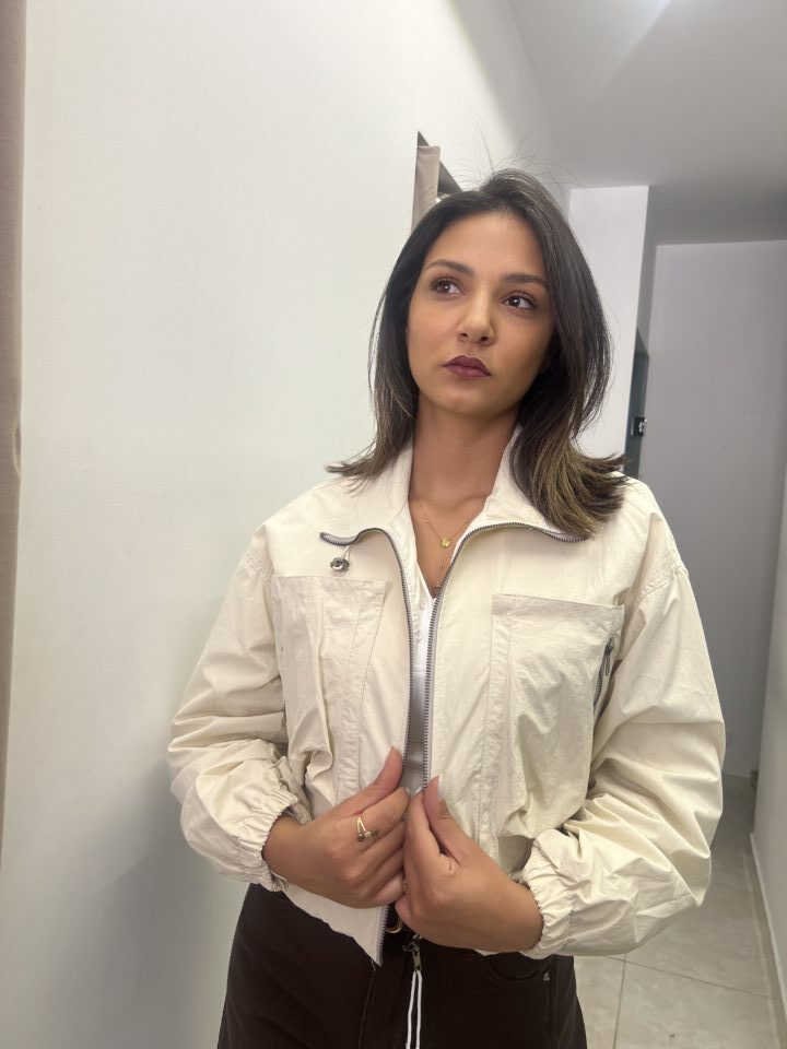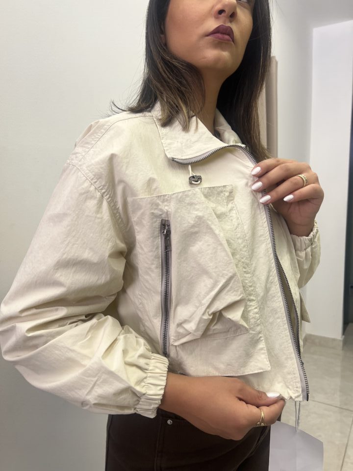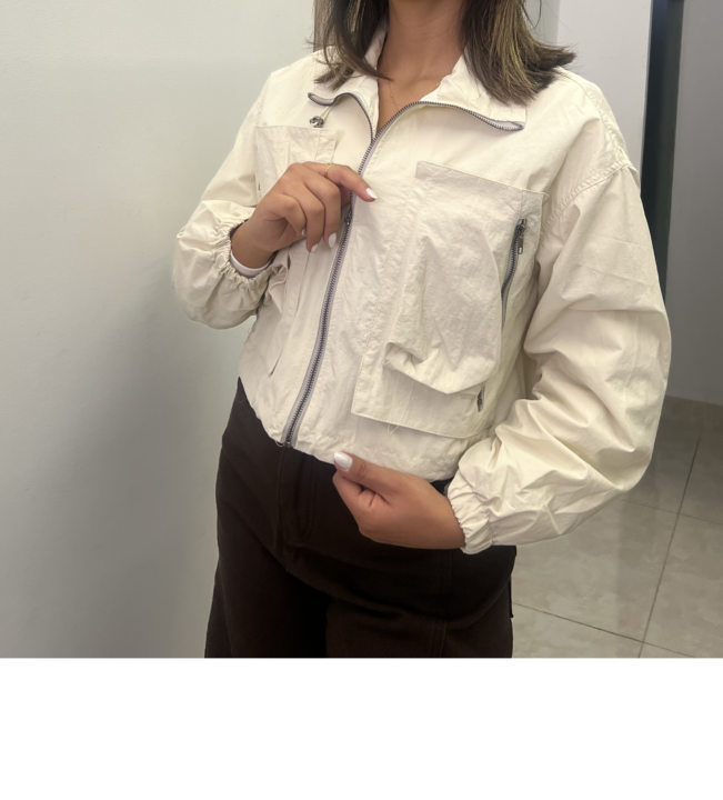 This lightweight jacket seamlessly blends military-inspired utility with a modern, cropped silhouette. It’s the perfect functional piece for transitional weather and adding an edgy finish to your casual outfits.