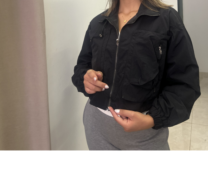 This lightweight jacket seamlessly blends military-inspired utility with a modern, cropped silhouette. It’s the perfect functional piece for transitional weather and adding an edgy finish to your casual outfits.
